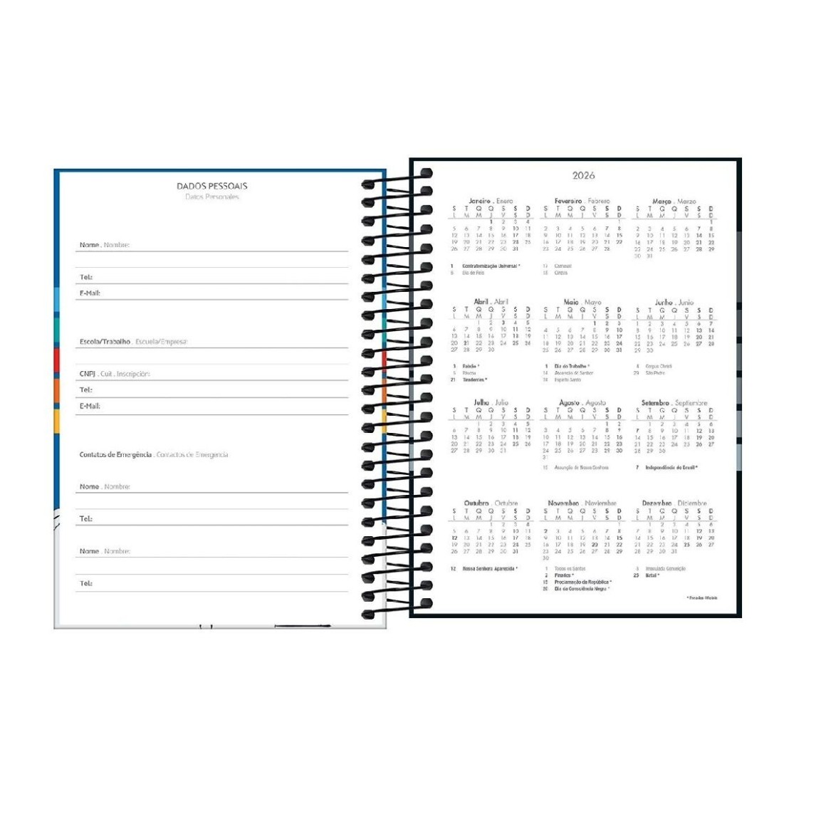 Agenda capa dura, espiralada com visão de 1 dia por página, exceto sábado e domingo. Ideal para a organização do dia a dia.