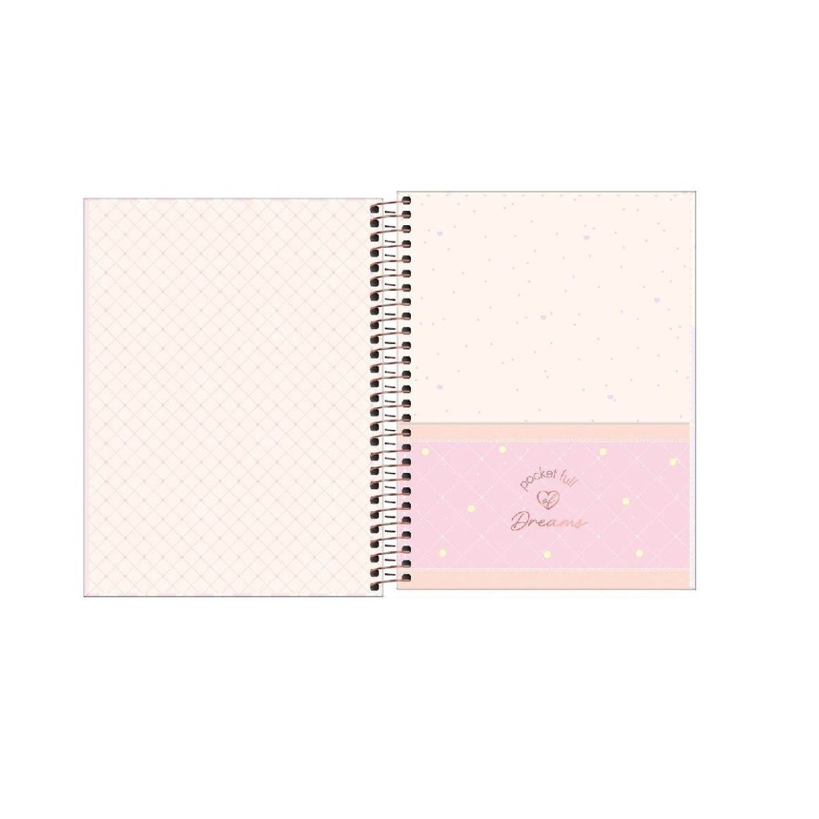 O Caderno Espiral Capa Dura Universitário 1 Matéria Soho 80 Folhas possui capa dura com detalhe metalizado, parte interna decorada, bolsa de papel decorada para guardar trabalhos e anotações, folha com adesivos funcionais, folhas pautadas decoradas e espiral colorido. Ideal para o dia a dia na escola ou na faculdade.
