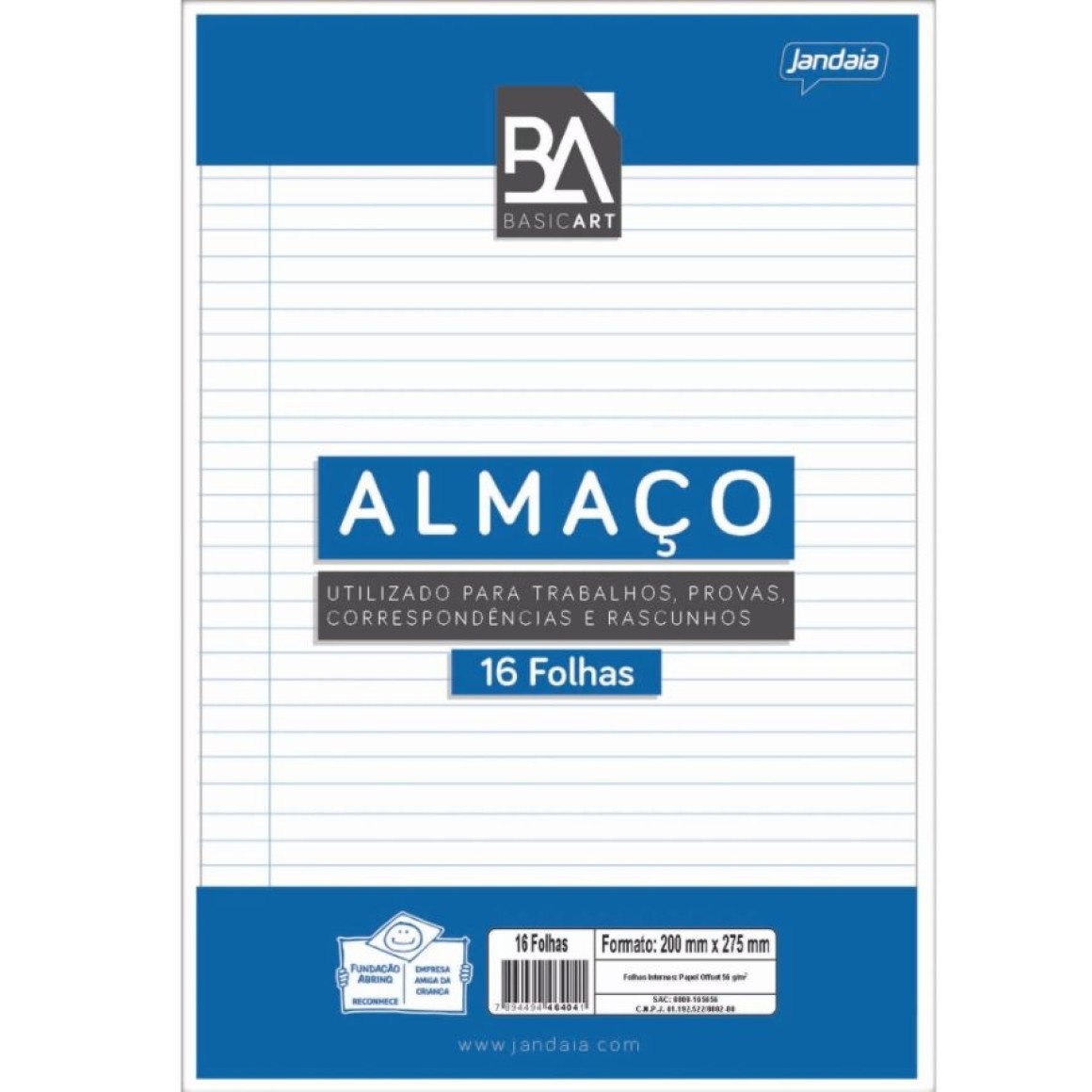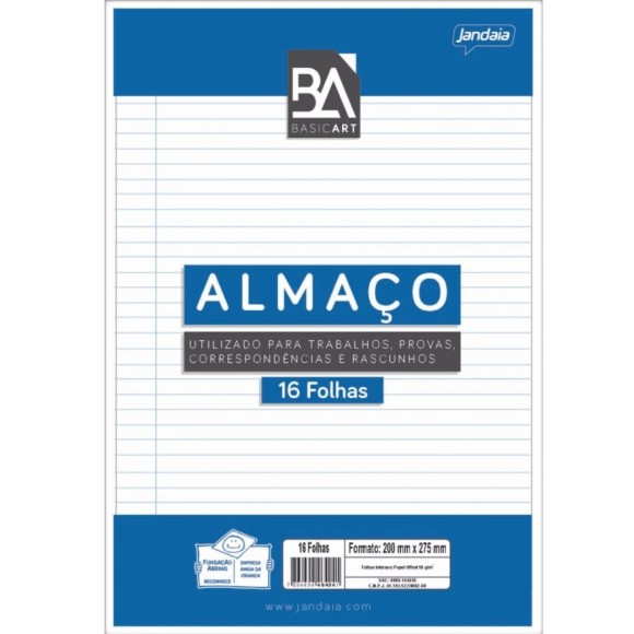 Papel almaço Basic Art da Jandaia é ideal para trabalhos escolares, provas e rascunhos.