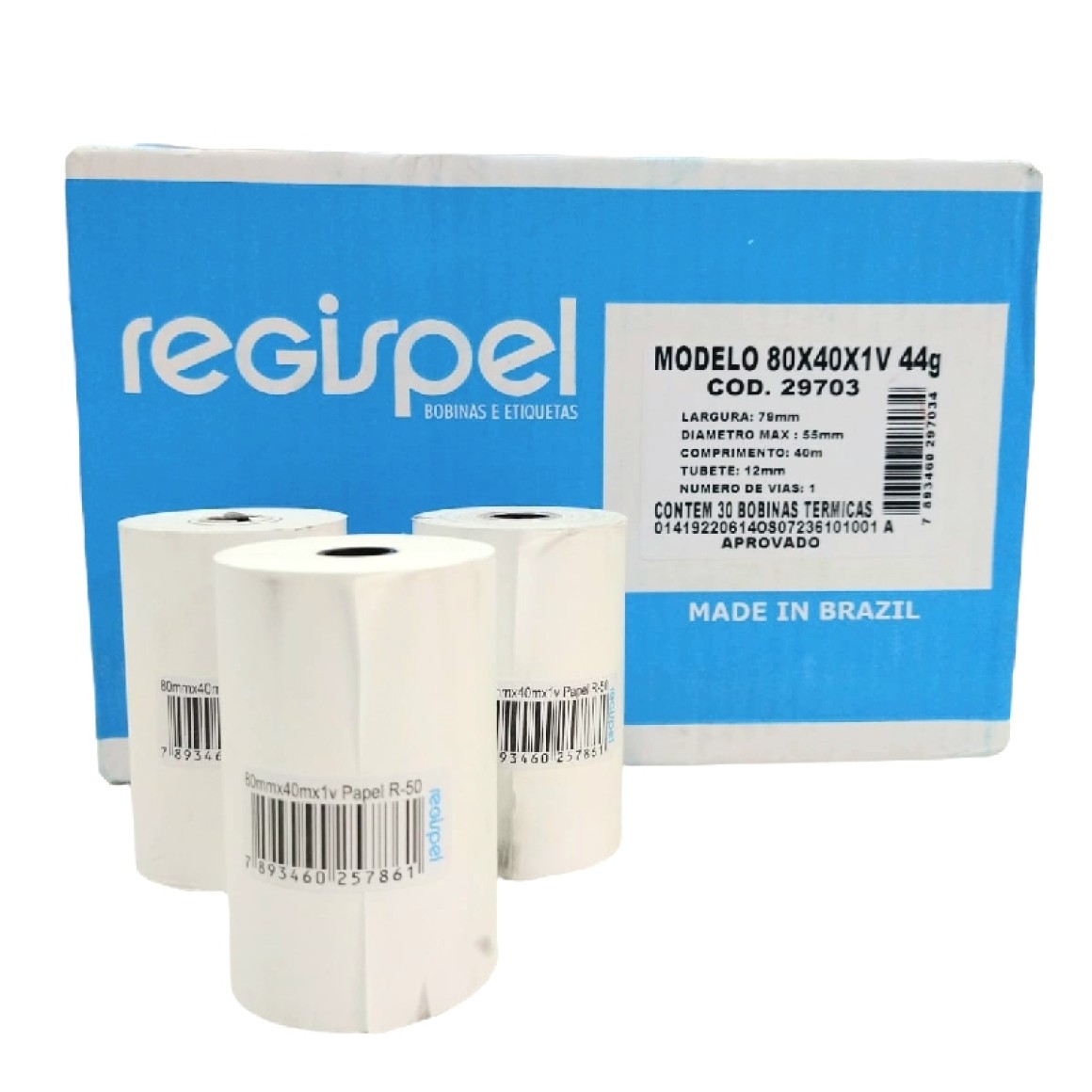 BOBINA TERMICA BRANCA 80X40X1 44G 30 UNIDADES