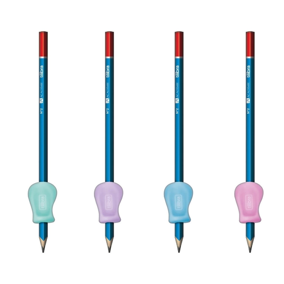 O grip é um acessório ergonômico para ajudar a melhorar a aderência e conforto no momento de escrever e desenhar. O produto, comercializado nas cores  azul, verde, rosa e roxa, pode ser acoplado em lápis e caneta.