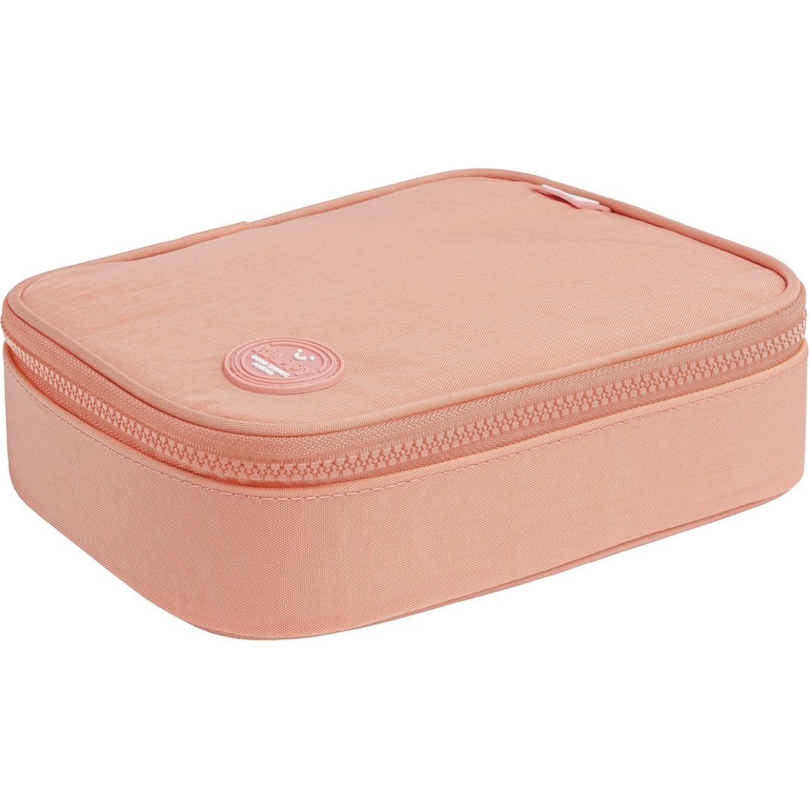 O Estojo Box Happy Salmão é prático, espaçoso e ideal para quem tem muitos lápis, canetas, outros materiais e acessórios. Além de facilitar seu dia a dia na escola, o estojo possui material resistente, é estruturado, espaçoso, conta com divisória central com elásticos que auxiliam na organização e fechamento em zíper.
