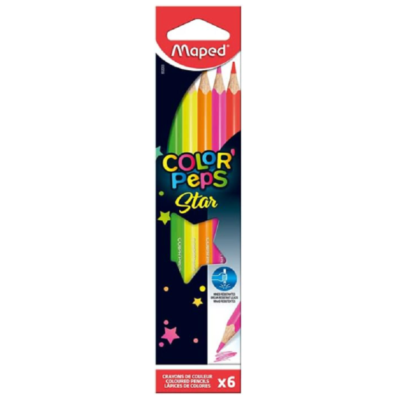LAPIS DE COR COLOR PEP'S FLUORESCENTES 6 CORES MAPED
