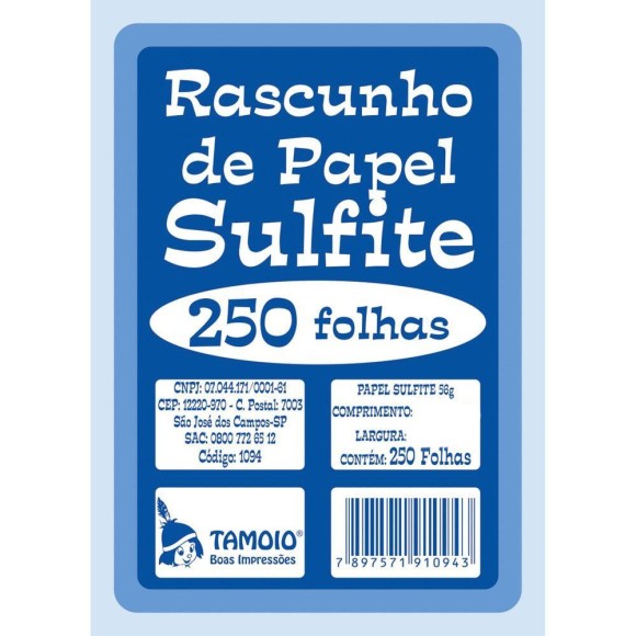 BLOCO RASCUNHO DE PAPEL SULFITE 78X109 250 FOLHAS TAMOIO