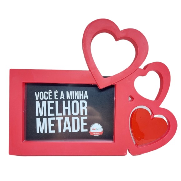 Porta Retrato de Plástico Horizontal com Decoração de 3 Corações para Foto 15x10.