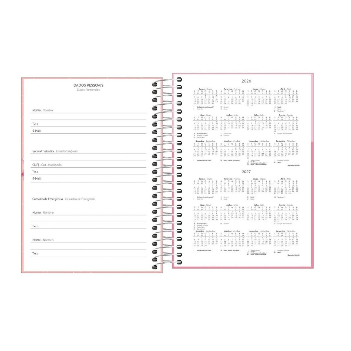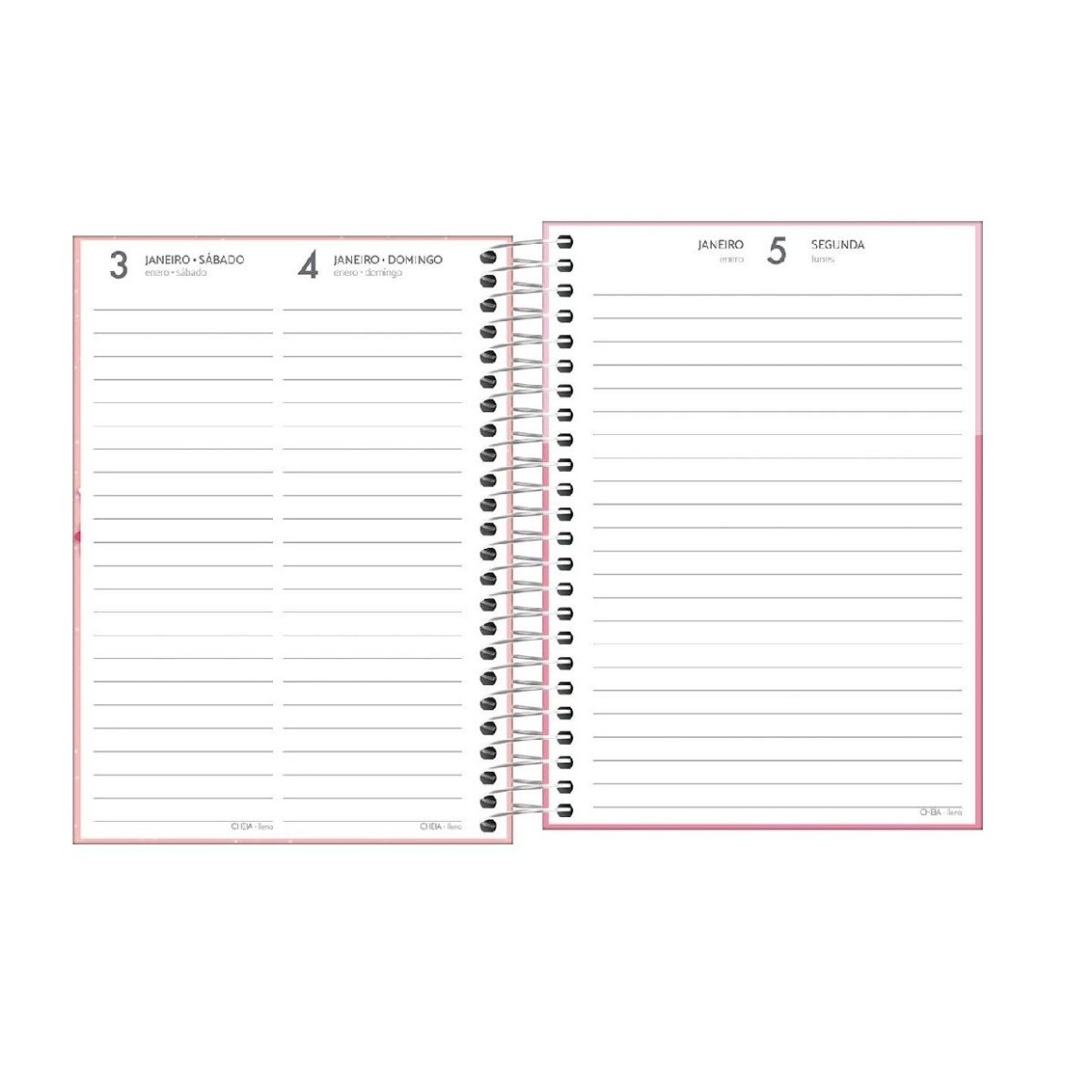Agenda capa dura, espiralada com visão de 1 dia por página, exceto sábado e domingo. Ideal para a organização do dia a dia.