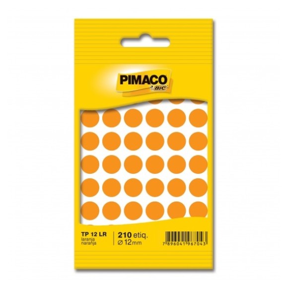 ETIQUETA ADESIVA TP 12 LR 210 UNIDS 12MM LARANJA PIMACO
