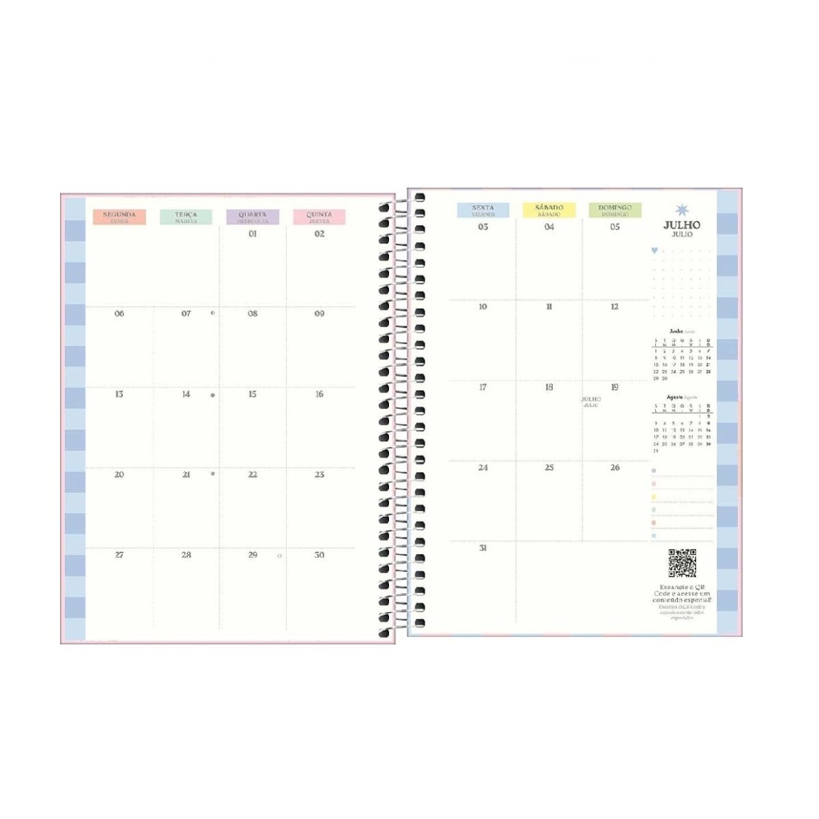 Este planner possui 80 folhas em papel creme, com gramatura de 90 g/m², e conteúdo temático em QR Code, é escolha ideal para manter todas as tarefas e compromissos bem programados.