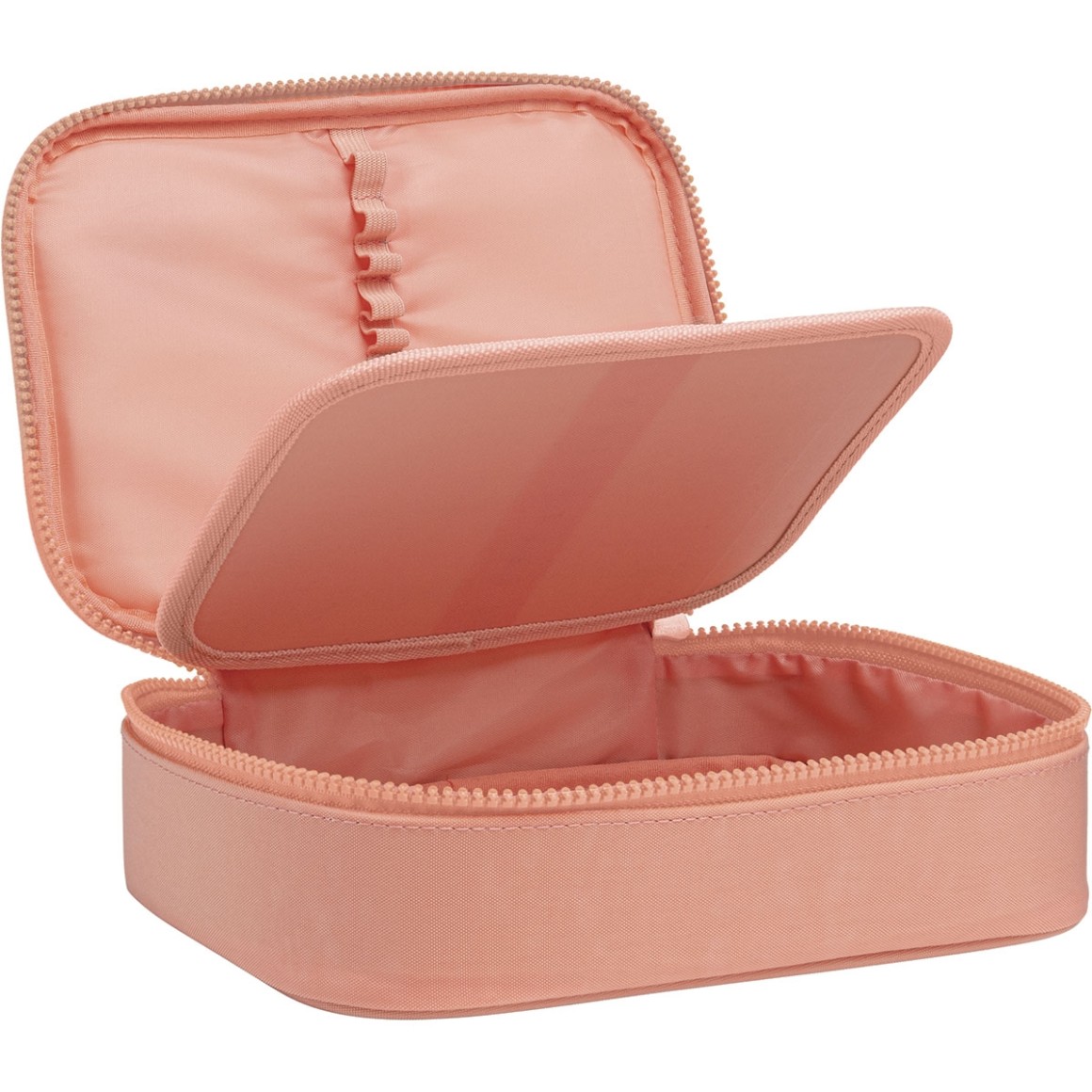 O Estojo Box Happy Salmão é prático, espaçoso e ideal para quem tem muitos lápis, canetas, outros materiais e acessórios. Além de facilitar seu dia a dia na escola, o estojo possui material resistente, é estruturado, espaçoso, conta com divisória central com elásticos que auxiliam na organização e fechamento em zíper.