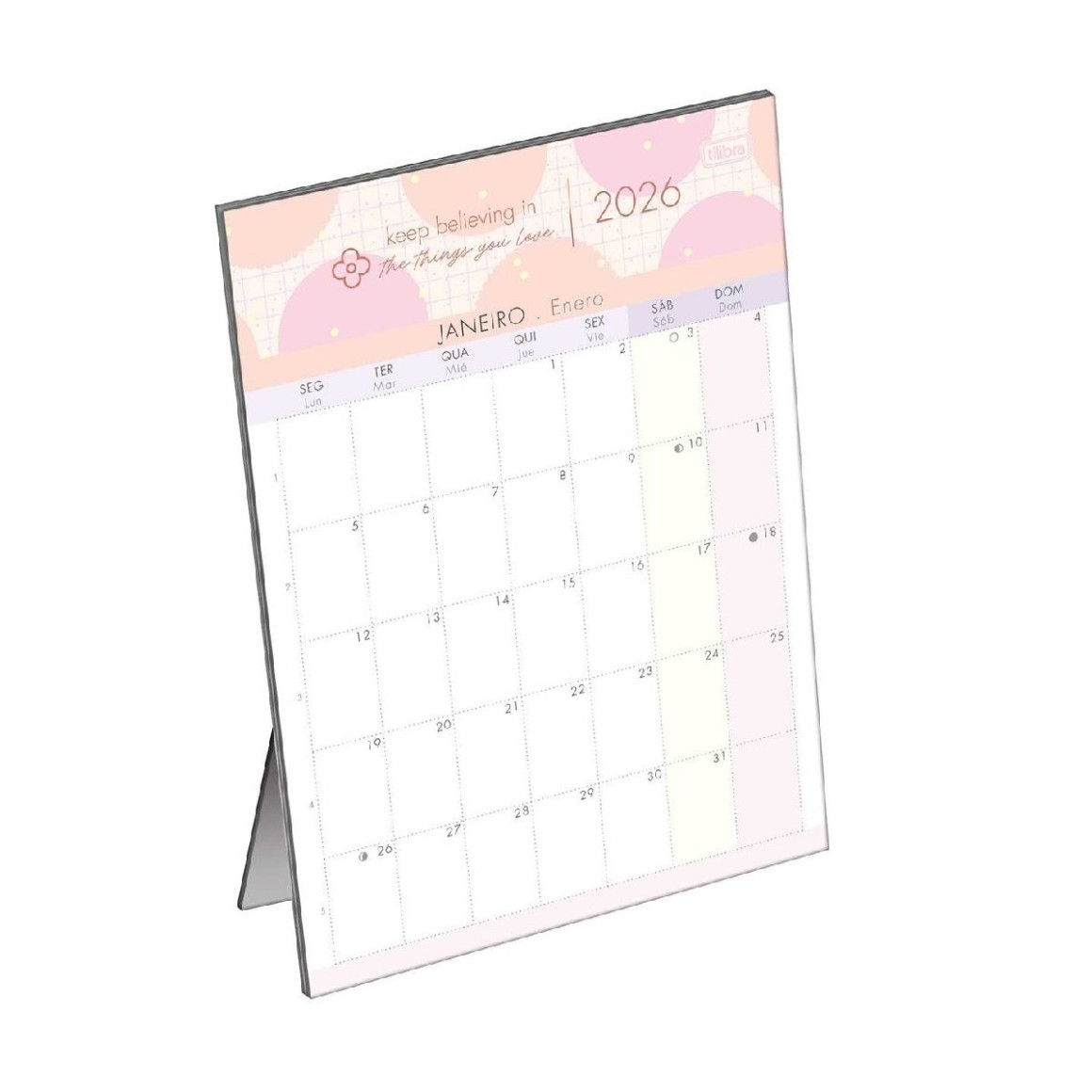 O calendário planner de mesa Soho da Tilibra oferece planejamento mensal com espaço para anotações objetivas de compromissos. O produto tem tamanho 13,8 x 19 cm, estrutura montável para permitir que fique sobre a mesa e 12 folhas com gramatura de 150 g/m².