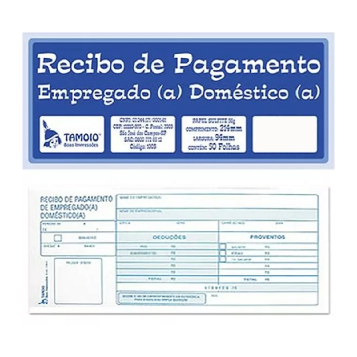 BLOCO RECIBO DE PAGAMENTO EMPREGADO DOMÉSTICO 50 FLS TAMOIO