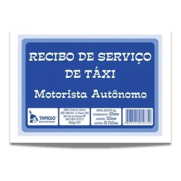 BLOCO RECIBO DE SERVIÇO DE TÁXI 50 FOLHAS TAMOIO