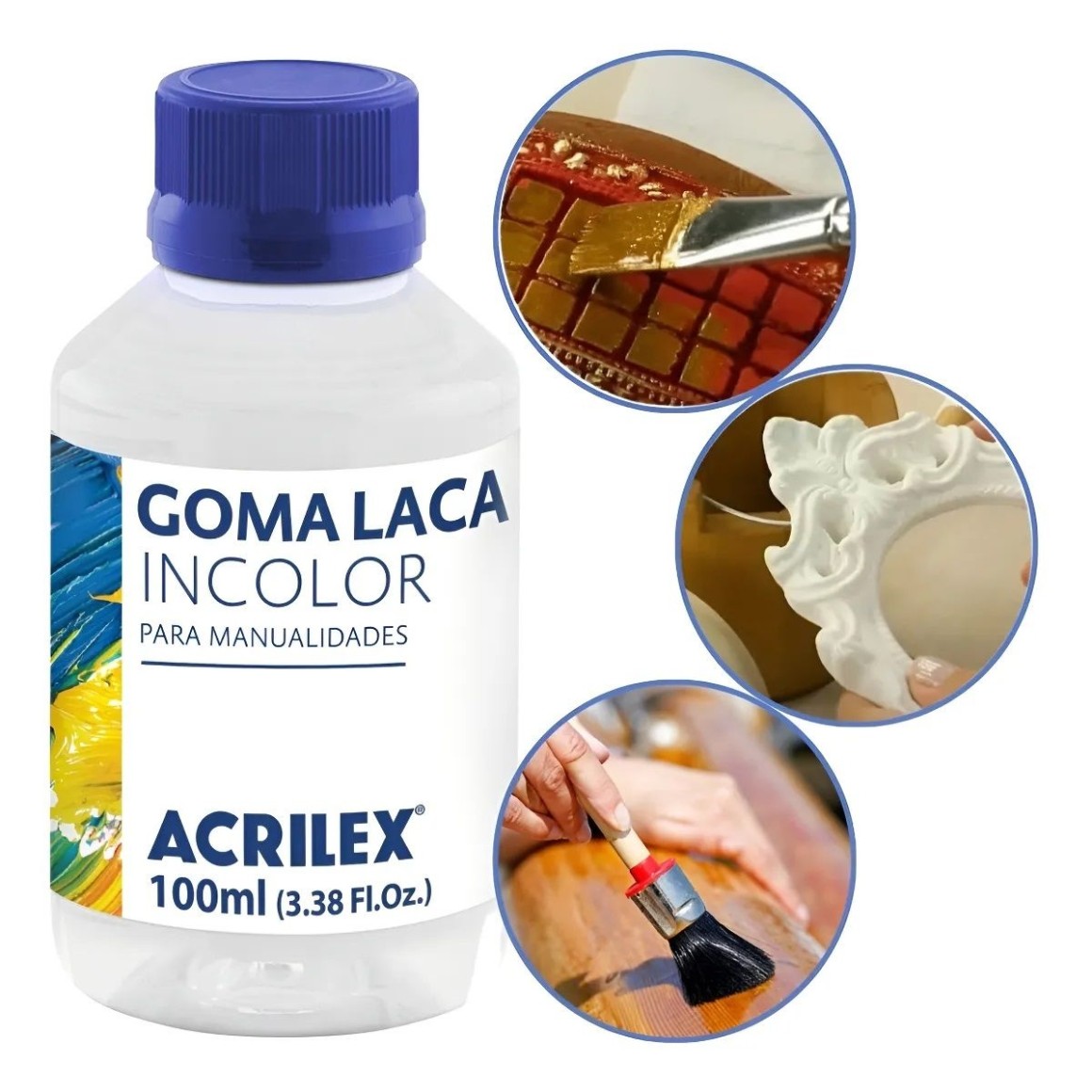 A Goma Laca Incolor Acrilex 100ml é ideal para selar, proteger e dar brilho em peças artesanais.