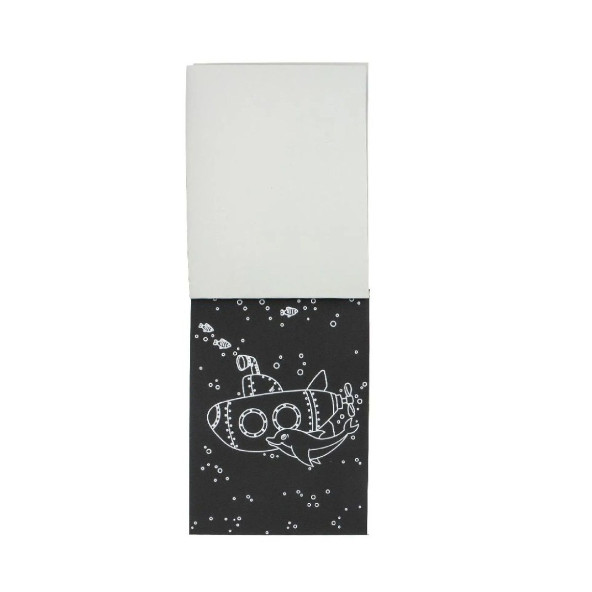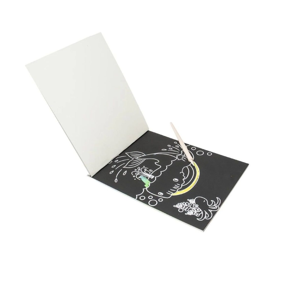 Acabamento Brochura c/hot stamping, páginas de cartão preto (tipo raspadinha). Acompanha um palito plástico. Embalagem com fechamento em adesivo.