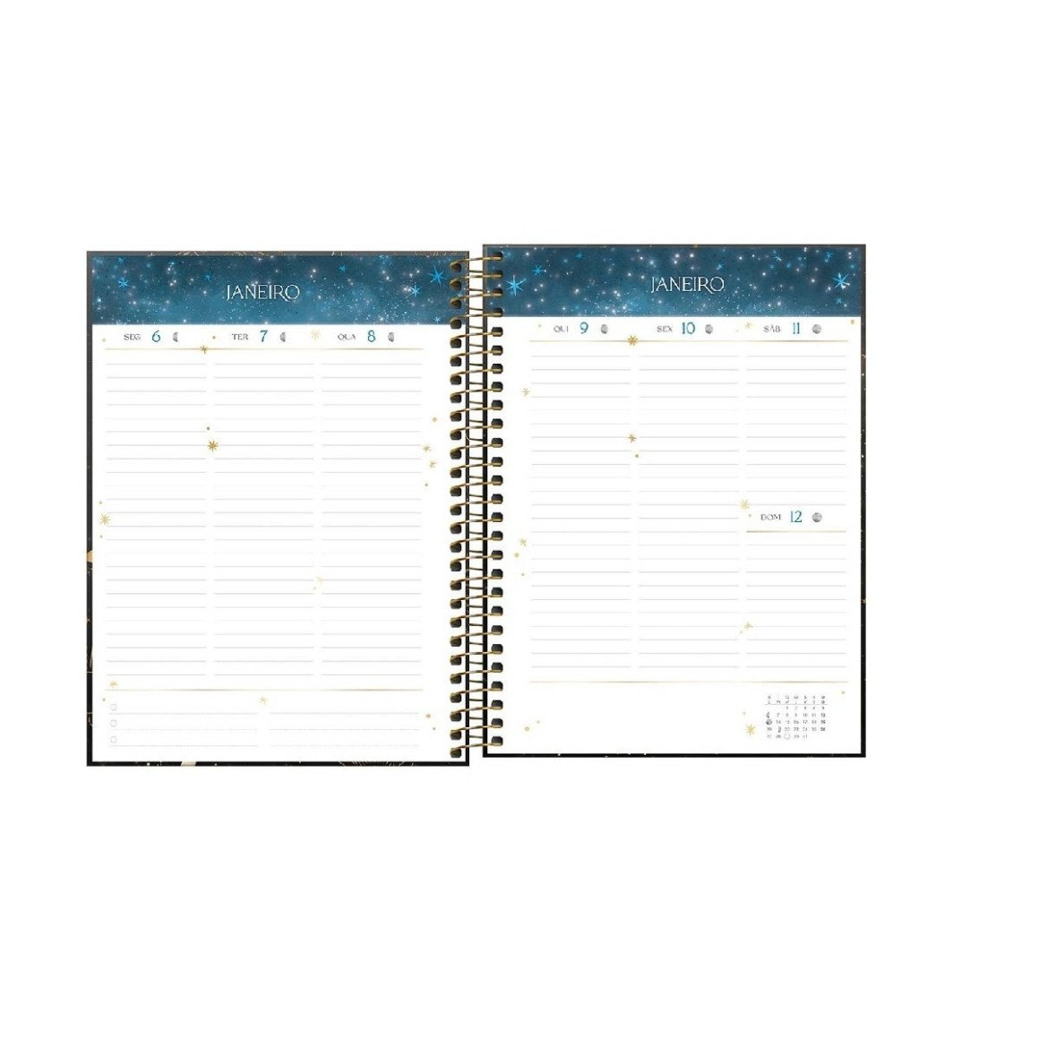 Se você busca um produto inspirado nas influências dos astros e mistérios cósmicos, o planner espiralado Magic da Tilibra é a escolha perfeita. O produto tem tamanho 17,7 x 24 cm, capa dura com detalhes metalizados, fechamento com elástico, bolsa de papel, adesivos e folhas com visões anual, mensal e semanal. Este planner, que possui 80 folhas e conteúdo temático em QR Code, é escolha ideal para anotar de forma objetiva todos os compromissos.