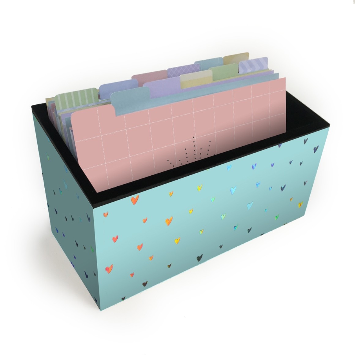 Agora você pode organizar suas fichas e guardá-las com muito estilo. Fichário de mesa em MDF revestido e a parte interna tem acabamento em material aveludado. Acompanha um jogo de 12 divisórias coloridas incríveis com frases na frente, papel offset 240g. Você ainda pode personalizar as divisórias como quiser, com nome de matérias, com os meses do ano e com o que mais desejar. Medidas: 22,5 comp. x 9,5 larg. x 13,0 alt.