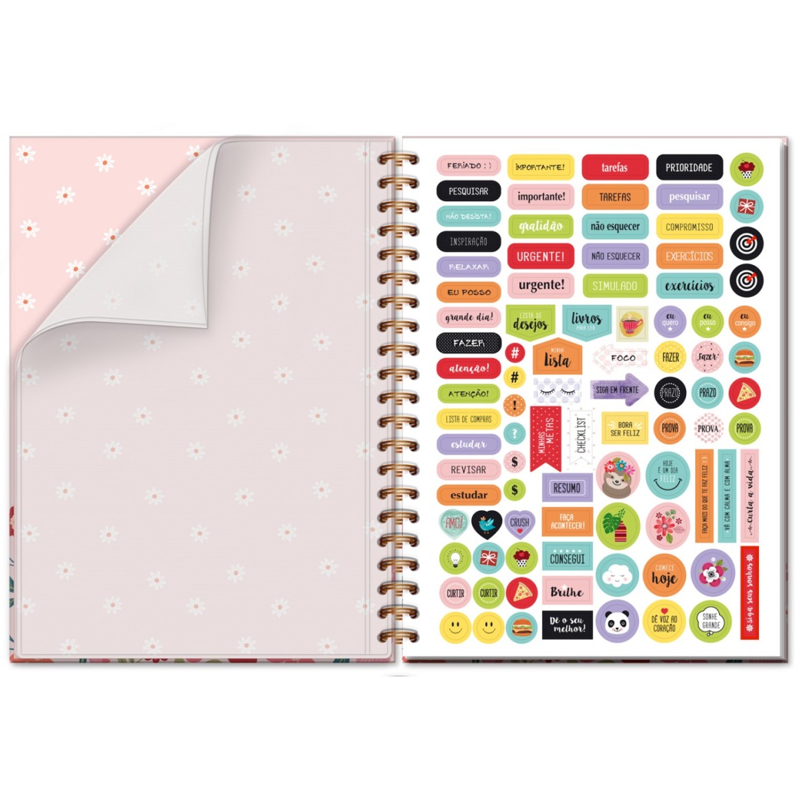 Caderno universitário capa dura, miolo pautado com 96 folhas em papel off set 75g, formato 20x27,5cm, encadernação wire-o e elástico para fechamento. Acompanha envelope para documentos e folha de adesivos.