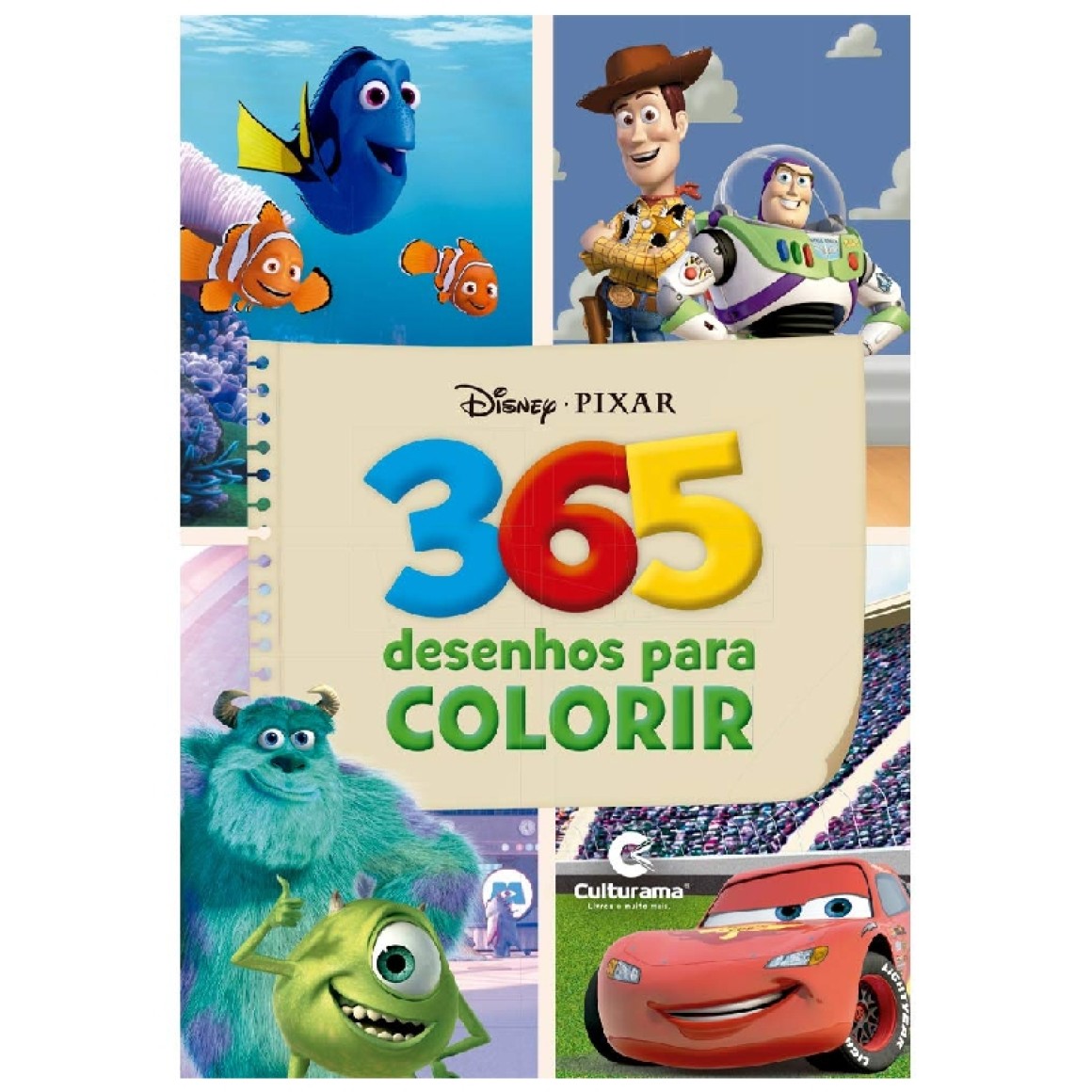 Colorir é uma das atividades preferidas das crianças. Este livro vem com 365 desenhos, um para cada dia do ano. São personagens como Relâmpago McQueen, Matte, Woody, Buzz, Nemo, Dory, entre outros.