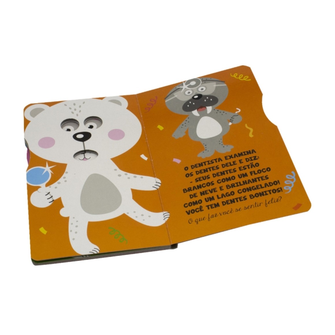 Hoje o urso polar precisa ir ao dentista. É um dia com muitas emoções diferentes. Gire o disco para descobrir como o urso polar se sente. Você consegue demonstrar os seus sentimentos também?